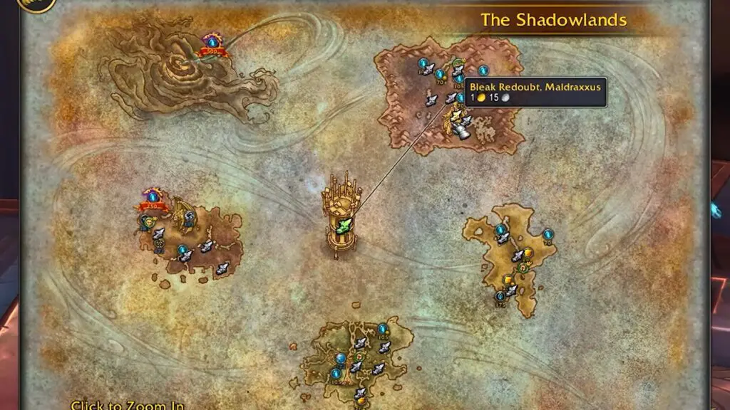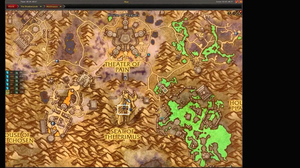 Fly to Maldraxxus, specifically to the Seat of the Primus, situated in the top-right corner of the map.