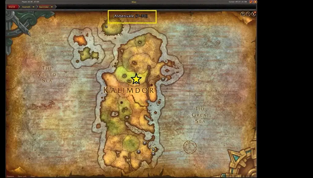 *Horde players should head to Orgrimmar and fly to Ashenvale.