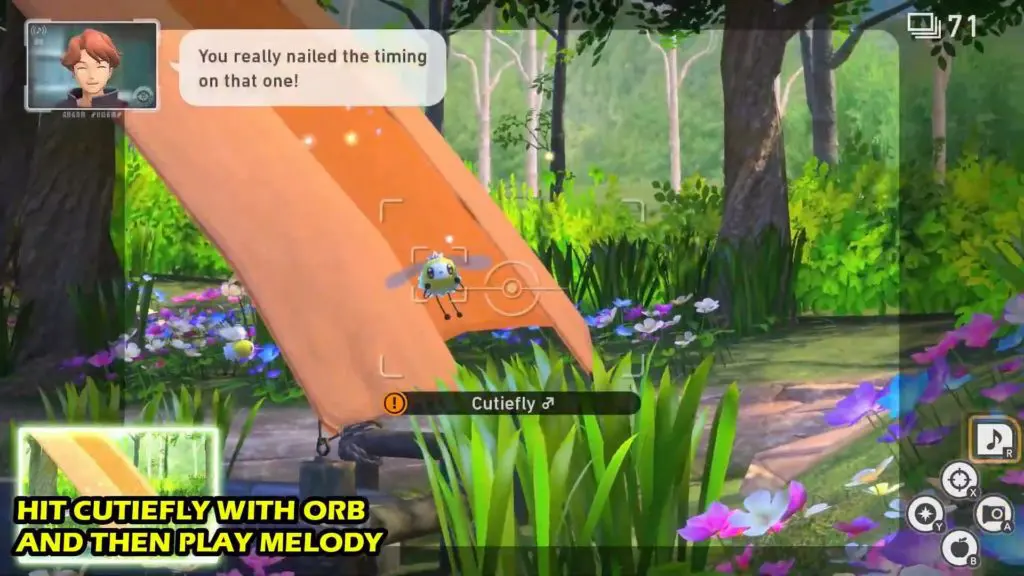 Throw orb on a Cutiefly and then play melody.