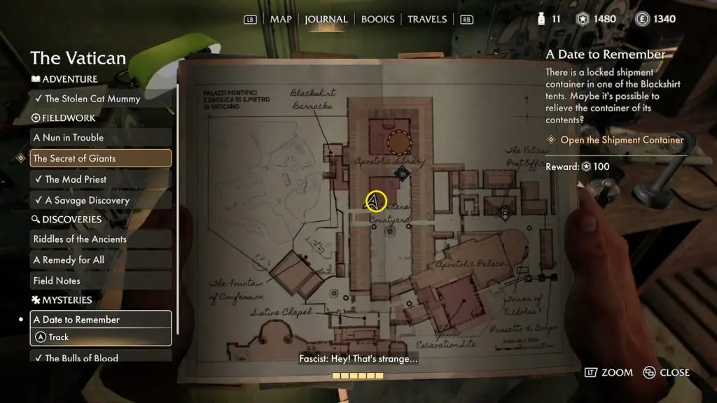 Note: You can start the mystery sidequest “A Date to Remember” only after you begin the Fieldwork Sidequest: “A Nun in Trouble” which will unlock the Museum Wing area.