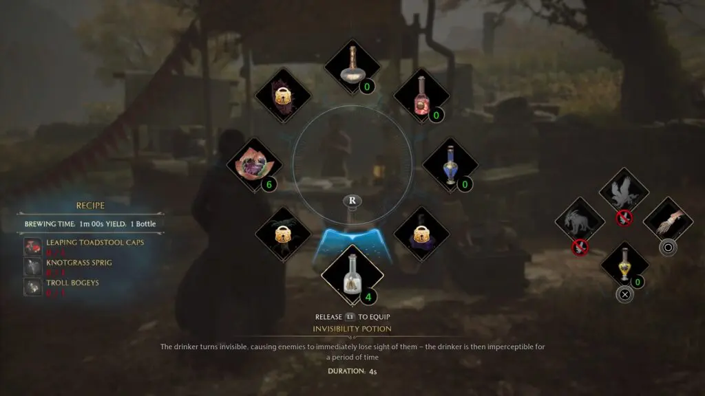 Press L1 to access the potions and drink an invisibility potion.