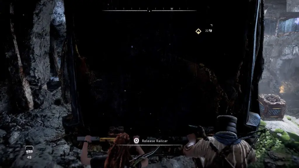 Move the railcar out of the path with Gildun’s assistance.