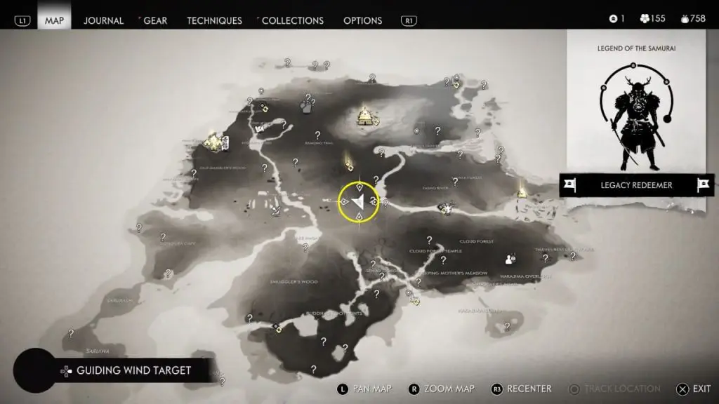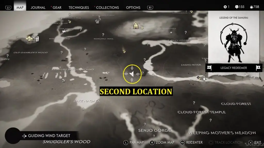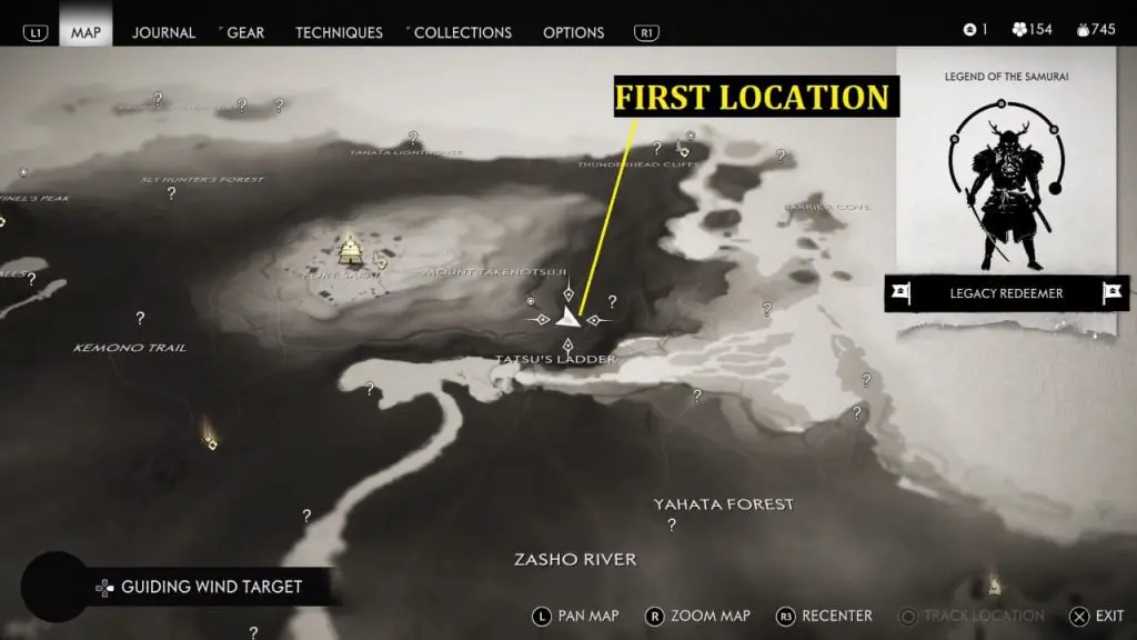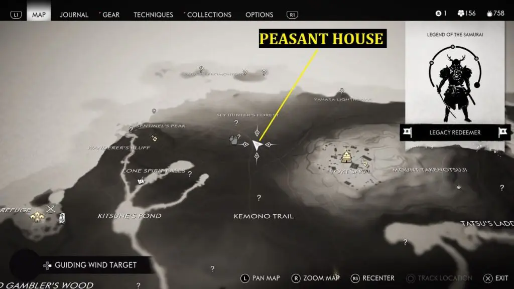 First, you can locate him in the wood as shown in the below image. Location is southeast of Mount Takenotsuji and north of Tatsu’s Ladder as indicated on the map. In case you don’t find him there then check back later. You can see the white smoke in the sky from far away when he’s present there. Interact with him and give 3 x Yew Wood to help him in building the house.