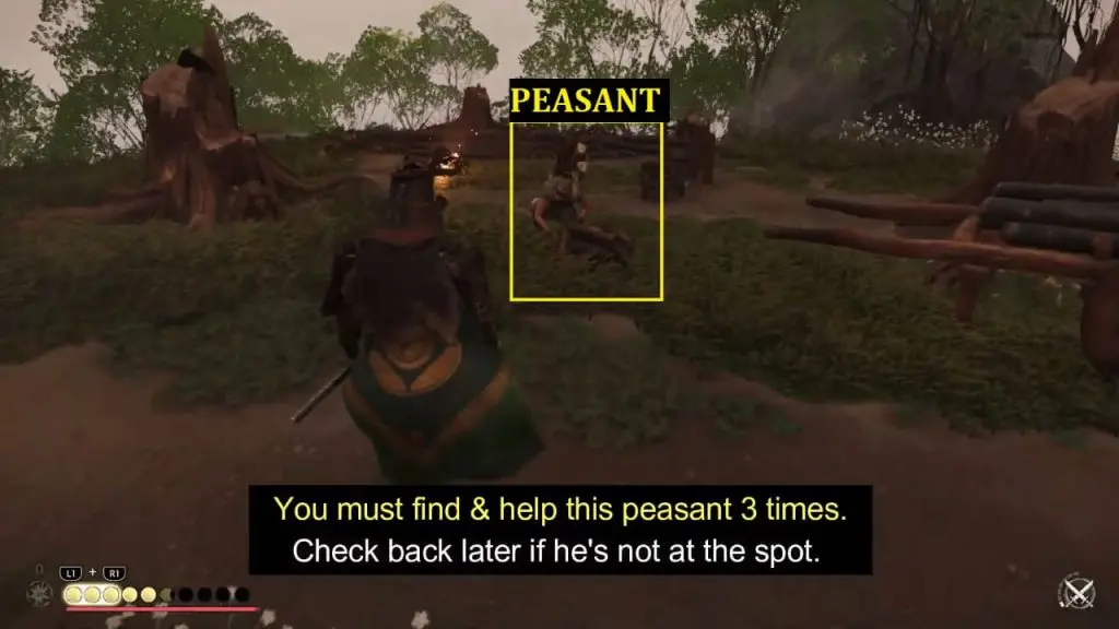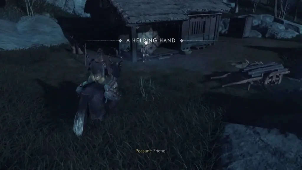 Helping Hand is a hidden tale that doesn’t show up in your journal nor there is any marking on the map about the starting location of the tale. To complete the side tale, you first need to find a peasant and help him to build his house that was destroyed by the Mongols. You can locate him by the white smoke in the sky that signals his location. He won’t always be there. If he’s not there, check back later.