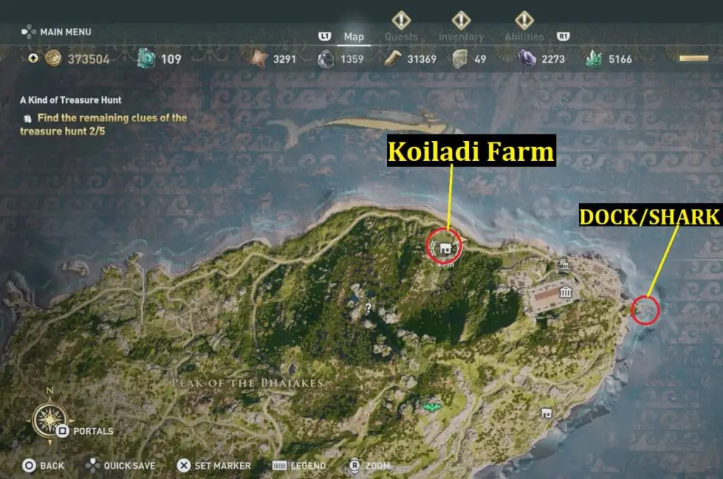 You can find the ancient tablet in the northern part of the map at Koiladi Farm. The ancient tablet is on the roof of a building. This will direct you to complete the treasure hunt clue 3/5 at a dock on the northeastern coast as marked on the map.