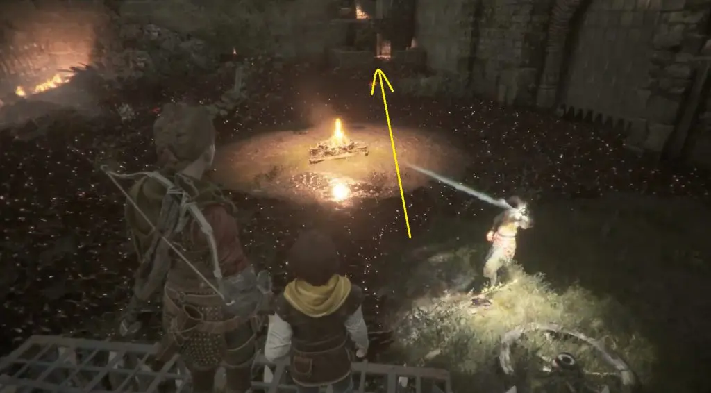 You must pass through a rat-infested courtyard where Sophia will use her crystal to reflect light to keep the rats away. After lighting the second brazier, instruct Sophia to use her crystal from the second brazier and walk over to the tower in the right corner. The chest is upstairs in that tower.