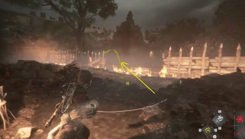 Exit the tower and continue on your journey, where Sophia uses her crystal to reflect light to keep the rats at bay. The chest is located on the other side of the building in the left corner with few enemies around. The building is surrounded by rats. Steer the rats toward enemies and enter the building from the left. Take a stick and ignite it on fire before going outside to open the chest.