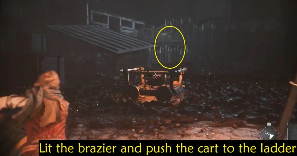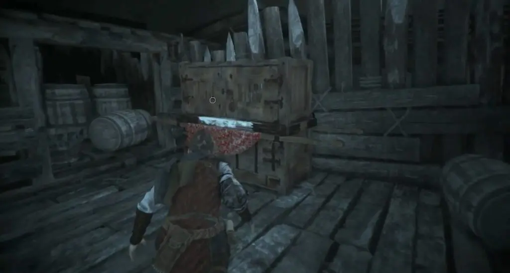 After your 1st enemy encounter, you will reach a rat-infested area. Push the cart with a burning brazier to the left end of the area. Use the cart to climb up the ladder. Upstairs you will find the locked workbench chest.