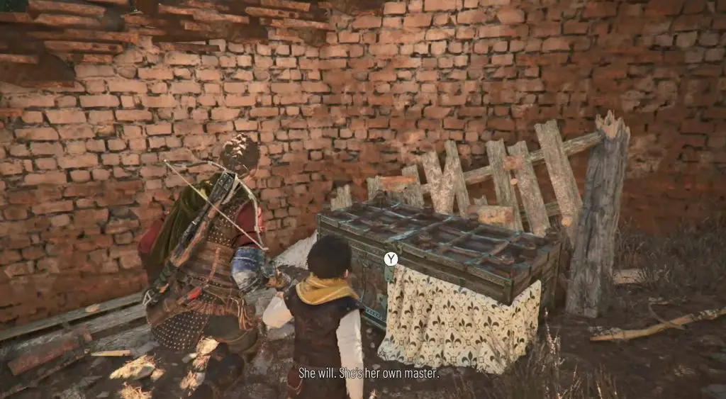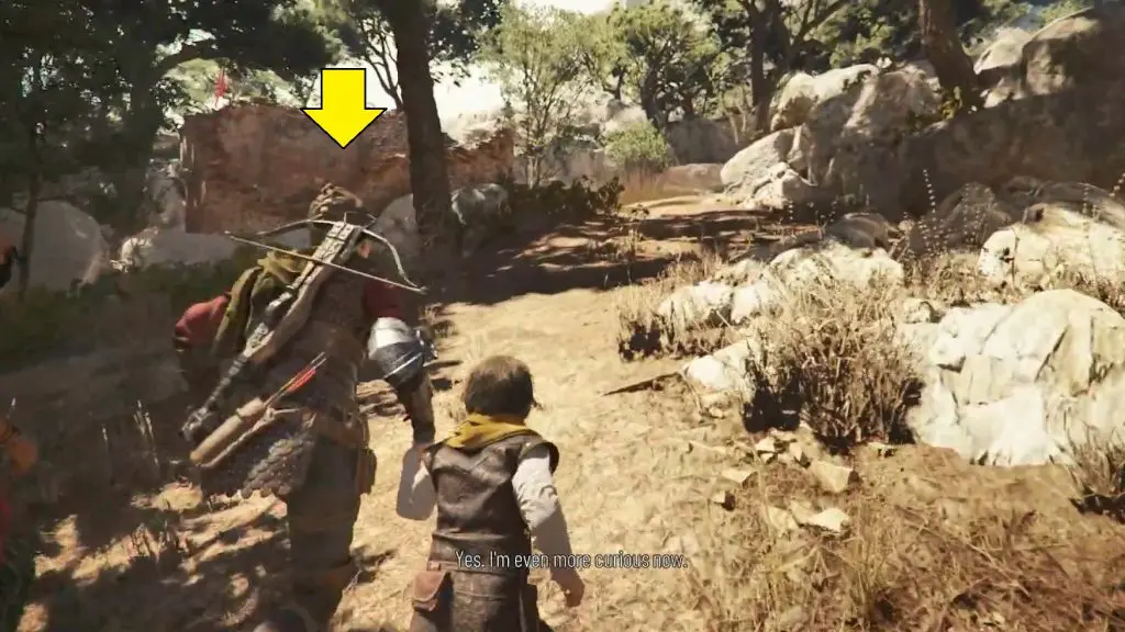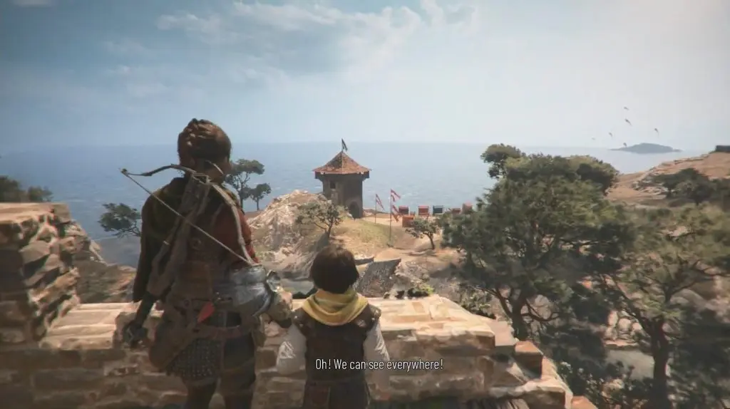 Climb to the top of the same tower where you find the secret chest. There you get a button prompt when overlooking the area to trigger a conversation. After the conversation, you will get the souvenir.