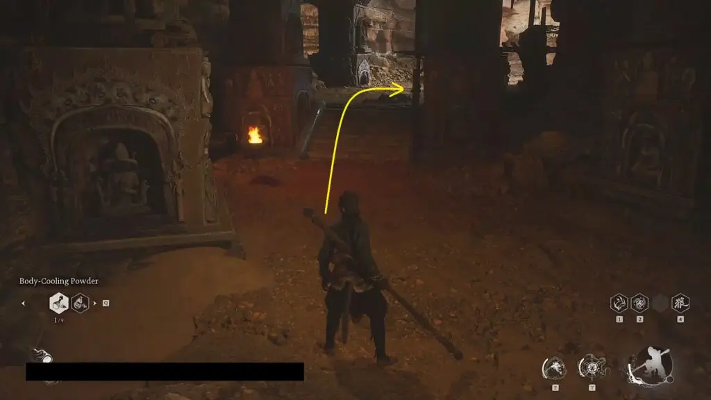 Travel to the Crouching Tiger Temple: Temple Entrance shrine. Climb up the stairs to reach Tiger Vanguard boss arena. Interact with the statue as shown in the picture below. This will open a secret hatch to reach the cellar underneath the boss arena.