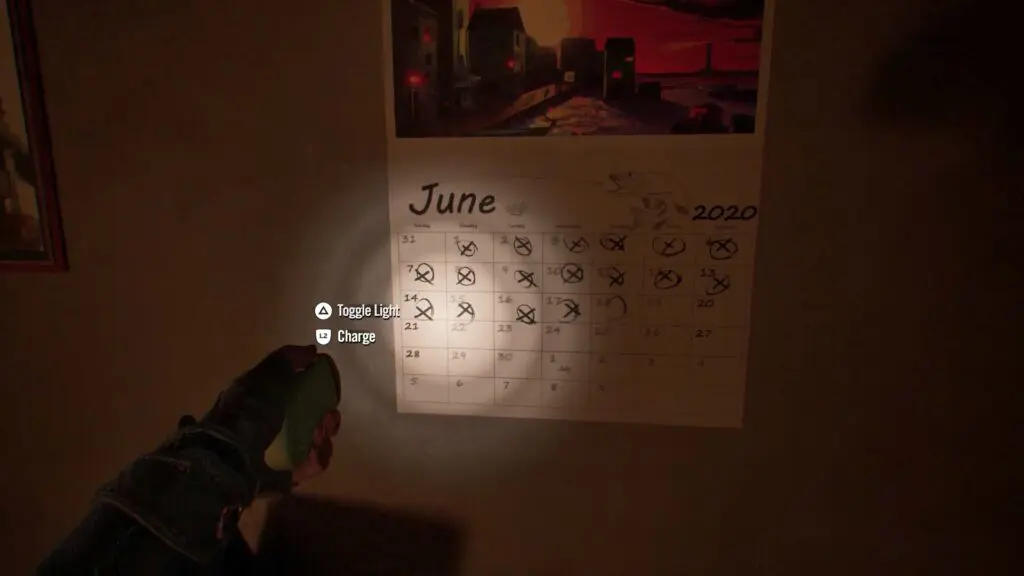 To find this week’s code, check the calendar in the next room. The calendar is for June, and the current date is the 17th, which falls on a Wednesday. This means Monday of this week was the 15th.