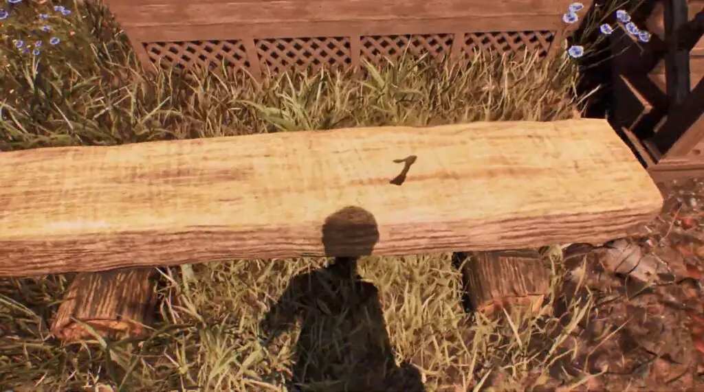 - The final number, 1, can be found on a wooden bench near the house.