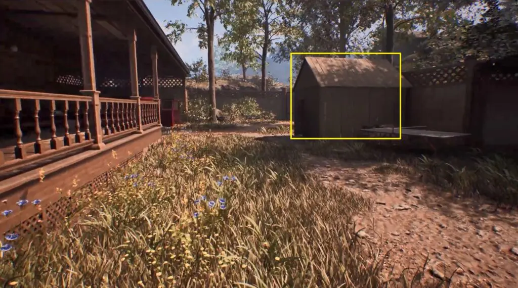 During The Lake House chapter, players can discover a briefcase inside a small shed near the barbecue area. Refer to the image below.