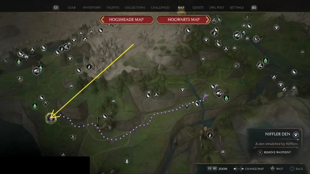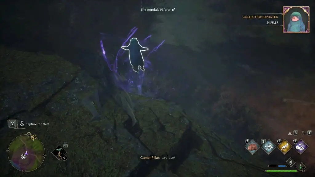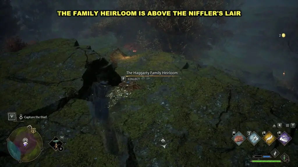 You will find a Biffler in the area. Use your Nab Sack to capture it. If you are having difficulty capturing the Niffler, then use Levioso to lift it up and then use the Nab Sack as shown in the picture below. Also, don’t forget to collect The Haggarty Family Heirloom from the top of the Niffler Den as shown in the second picture below.