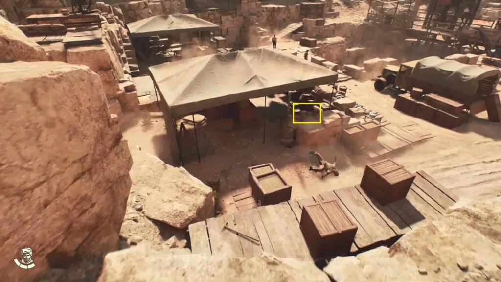 To find the missing soldier, go into the desert located west of the Tomb of Khentkawes. This area is called the Water Pumping Station, and you can find it marked on the map below.