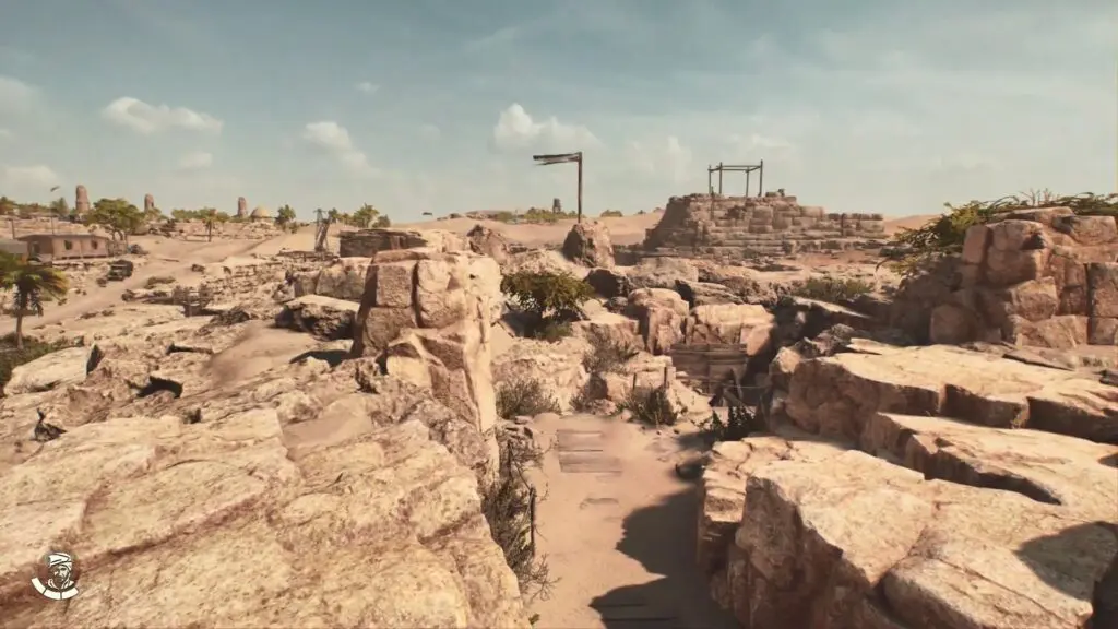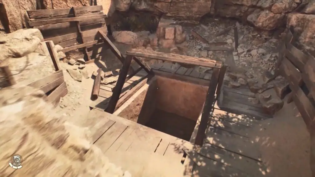 Look for a white flag in the area as it will help you locate the spot easily. Near the white flag, you’ll see a hole in the ground. Drop into the hole to enter a cave.