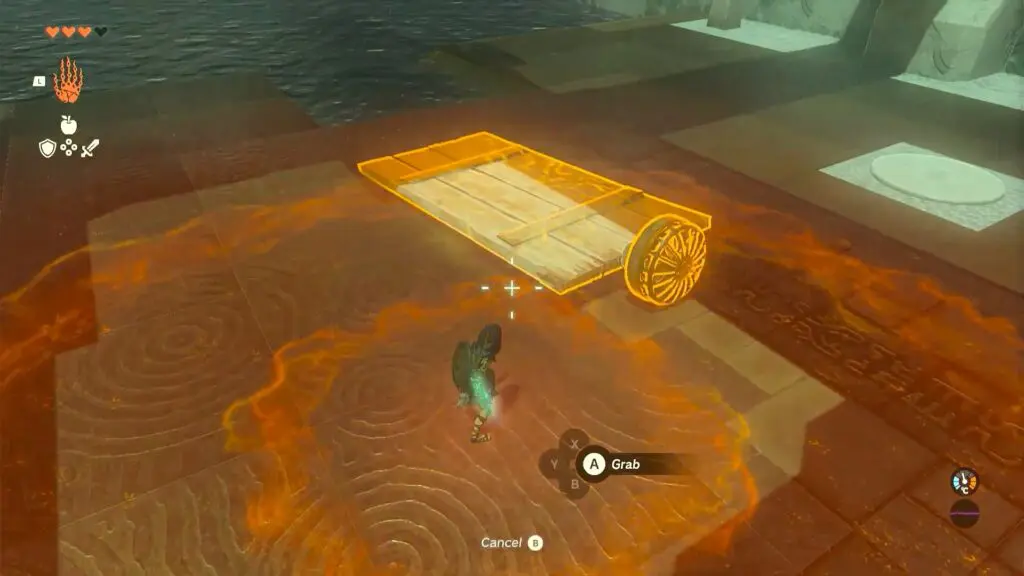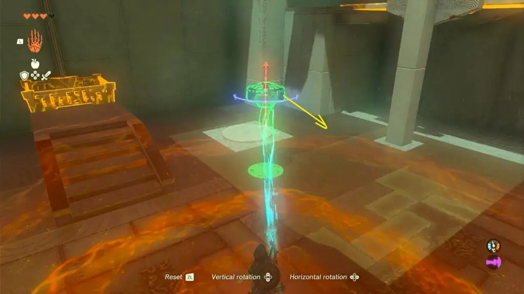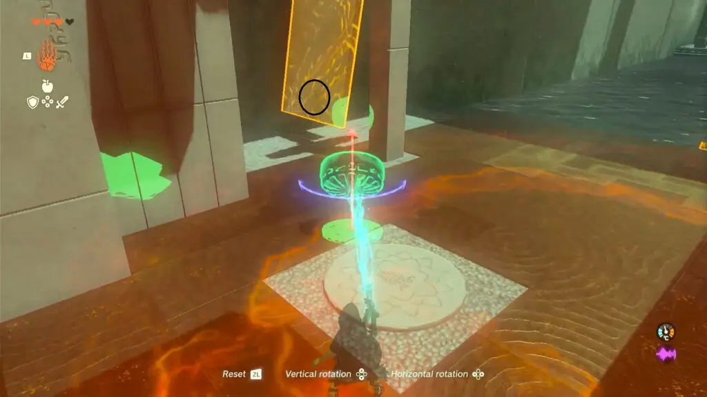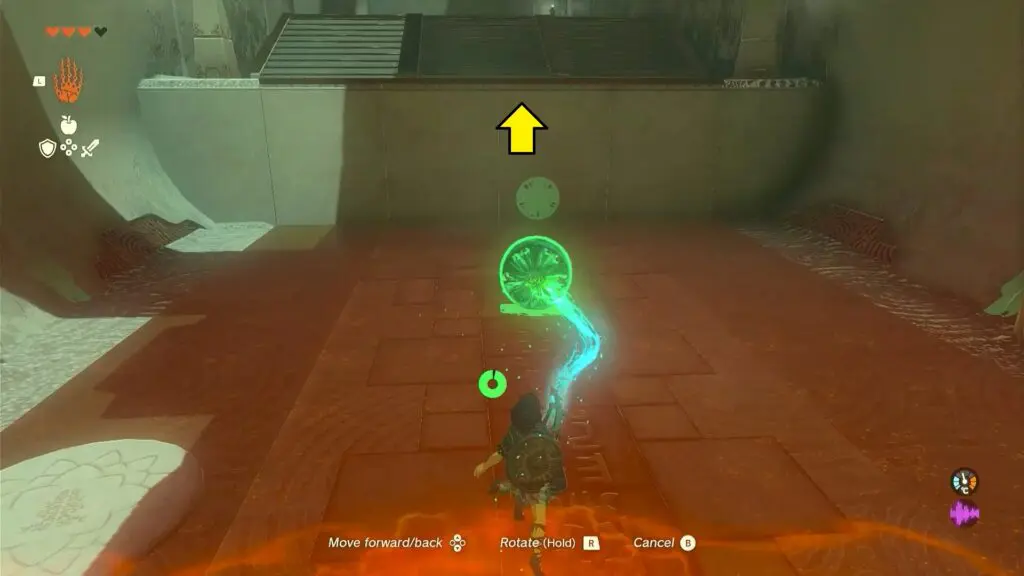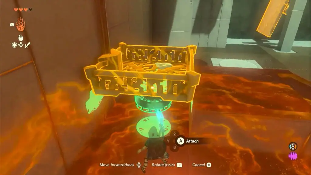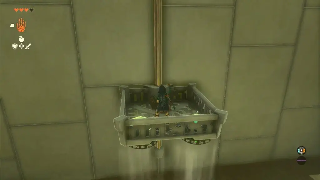 Puzzles within the Ishodag Shrine are about building a using fan and using it to build a platform to cross the shrine. As you enter the first room, you will find a fan on the left side. Use ultrahand ability to move the fan near the wall with the grate part facing up.