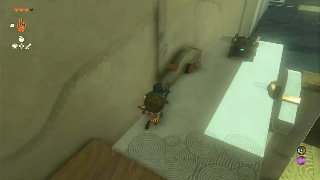 You will find a chest right side of the last area. Use Ultrahand to lift one of the fans and position it at the rear of the chest (vertical platform) with the grate facing the opposing wall.