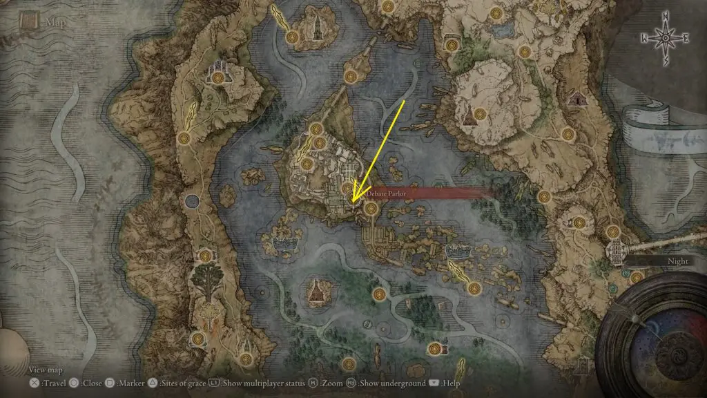 I will show the path to get to the Glintstone Key from the Debate Parlor as shown below.