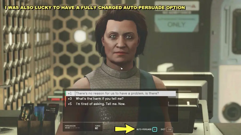 Interact with her and ask for her Claim ID. This is something not very easy to obtain. Persuasion is the only way to get her Claim ID. You can increase your chances of convincing her by drinking Paramour, Hippolyta, or Velocity. You might also utilize the Auto-persuasion option on her Claim ID.