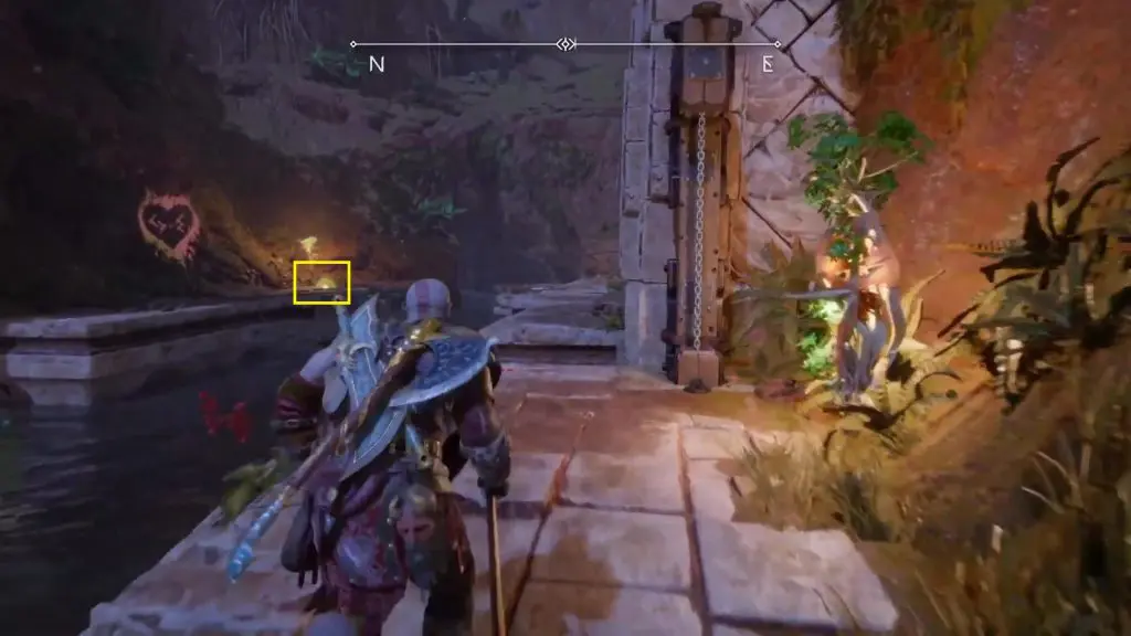 After collecting the recipe, turn around and go straight. Jump down the ledge and you will see the ingredient there in front of a painted heart as shown in the picture below.
