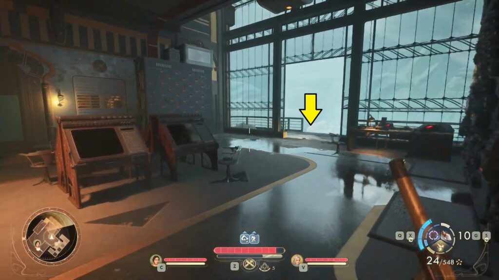 When you come out, you’ll see the floor is covered in electricity. Use your double jump to safely cross the floor and reach the terminal. Use the terminal to unlock the Burndown Rooms. This will turn off the floor traps on the ground level.