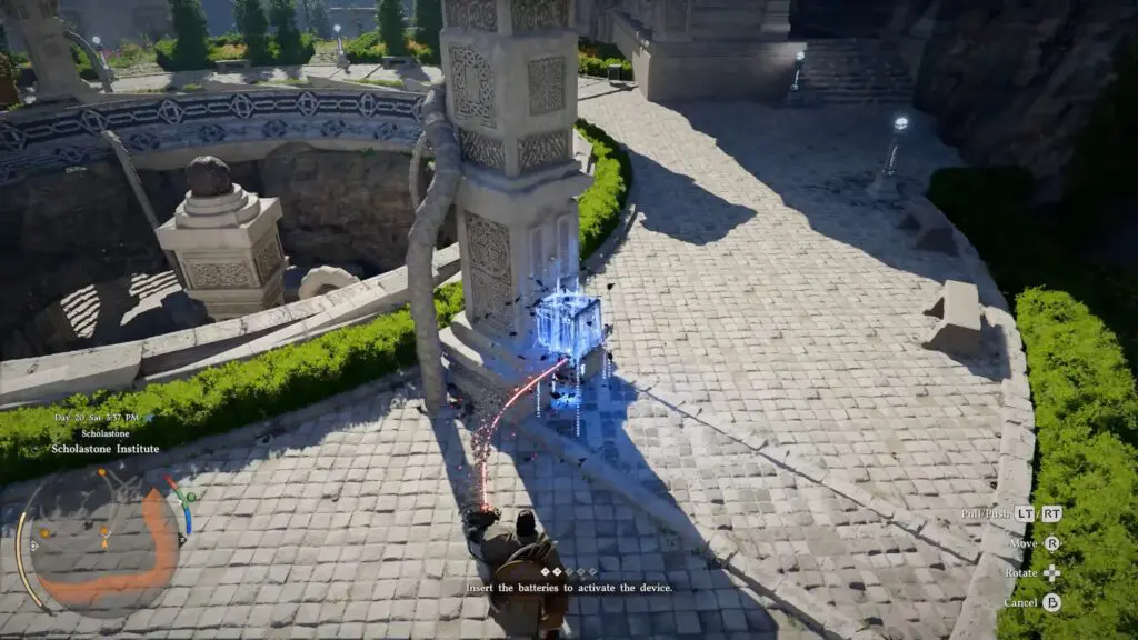 2. Release it so it floats near the socket, then use Force Palm to push it into the pillar.