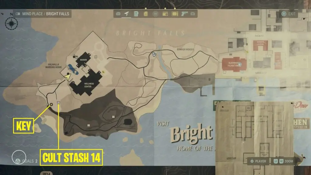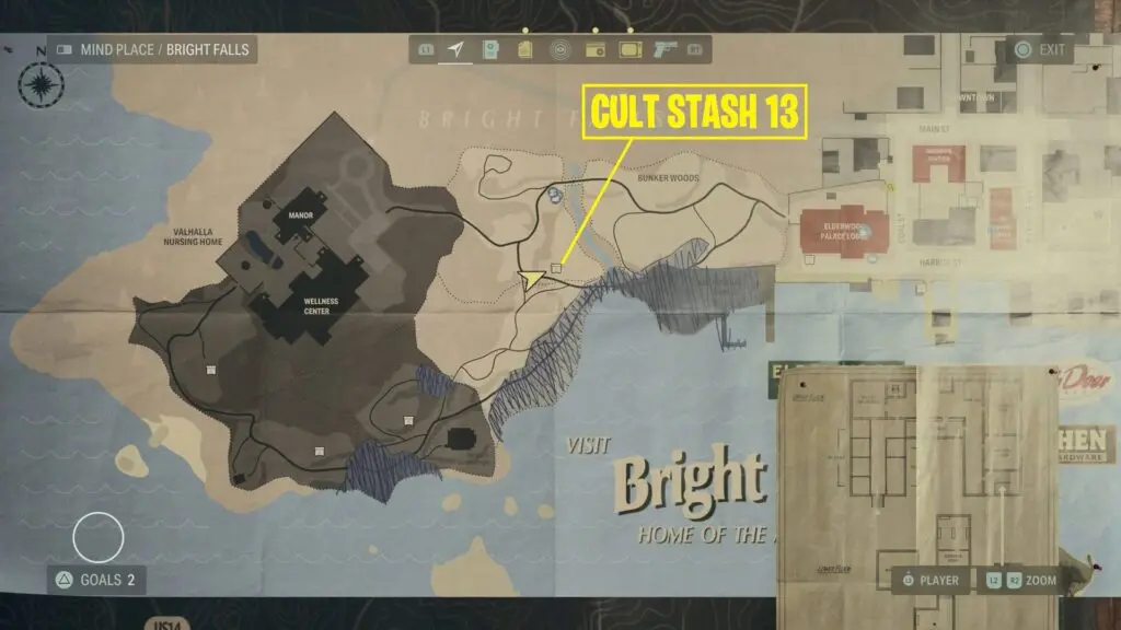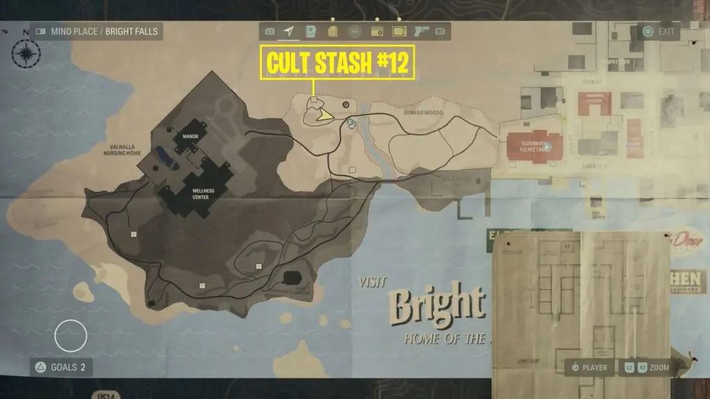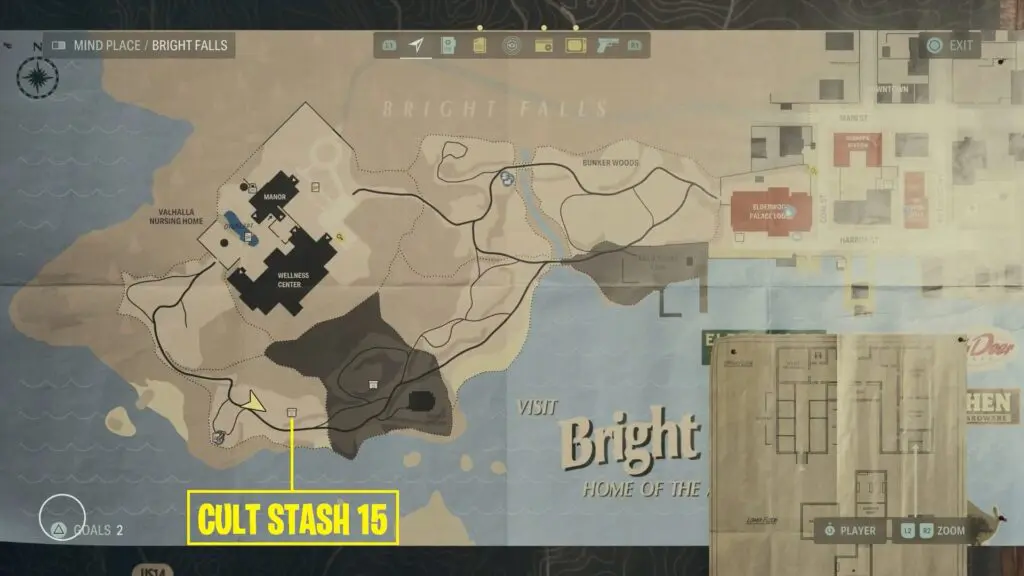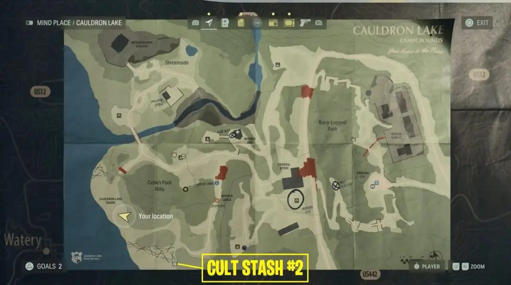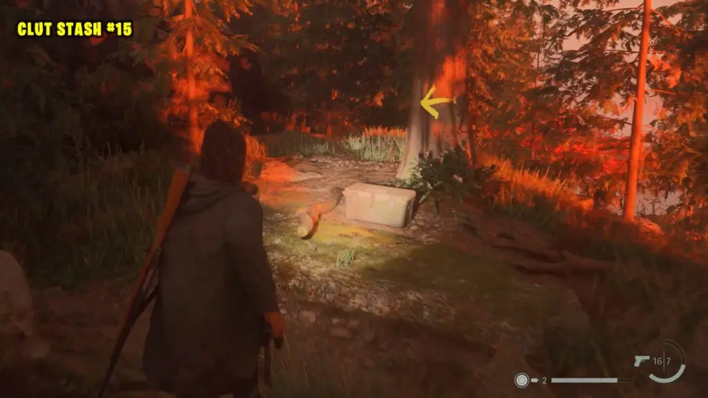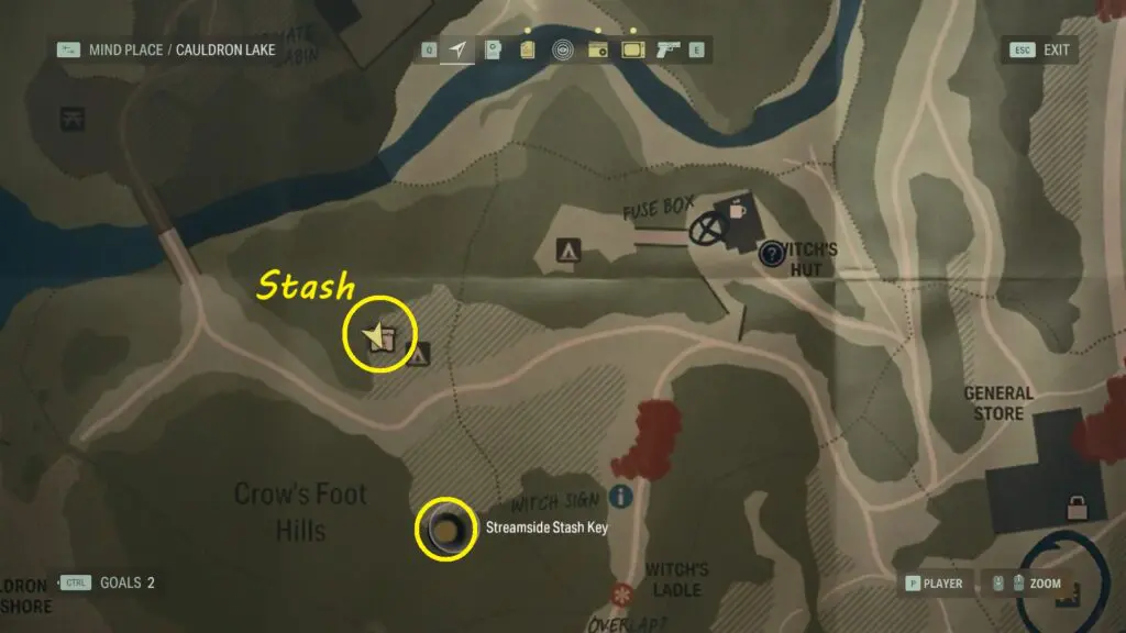 You’ll find the Alan Wake 2 streamside stash near a table and some camping gear as shown on the map.