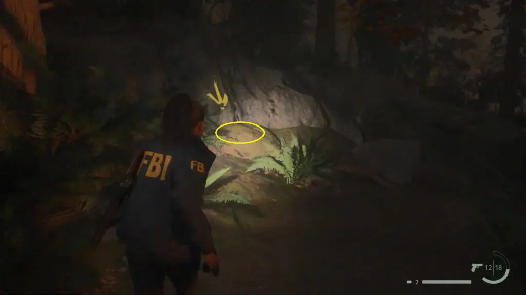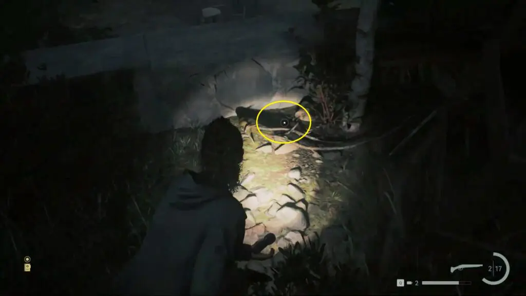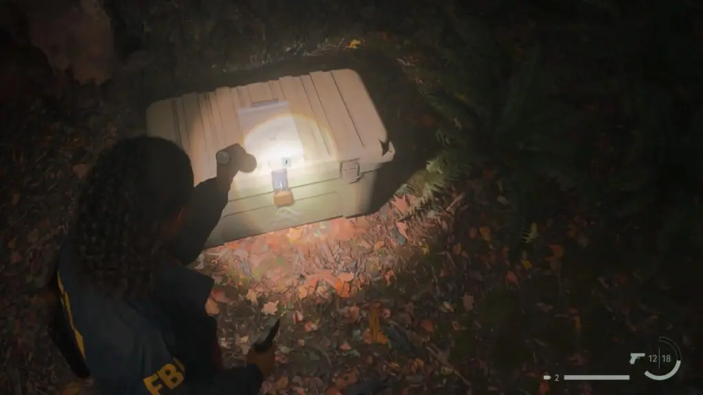 To unlock the lock, you must first find the key for the stash. Shine your flashlight around the area, and as you do, keep an eye out for some yellow arrows that will glow in the light of your torch. Follow these yellow arrows, and they will lead you to a specific place where you can discover the key for the stash by the streamside.