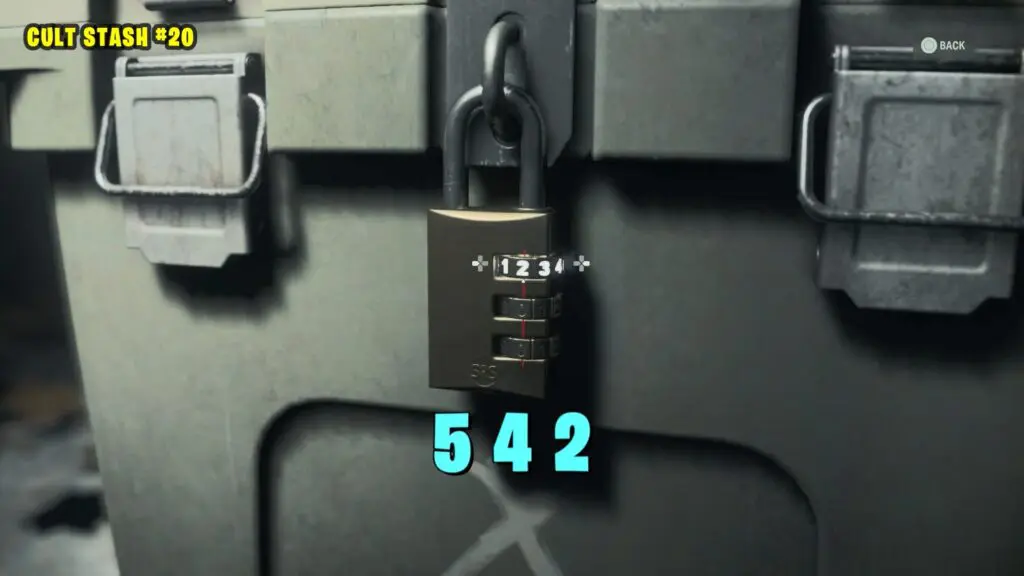 The cult stash can be found in the northern area of Bunker Woods. To unlock the stash, press the button in the same order as the keypad blinks.