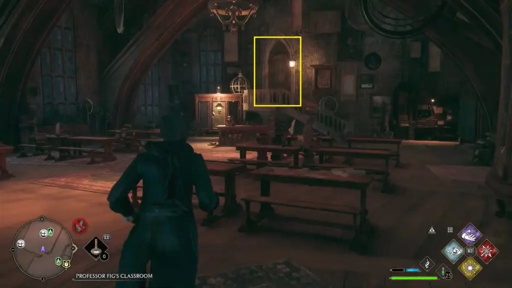 Enter Professor Fig’s Classroom and go through the door as shown in the picture below to find the statue.