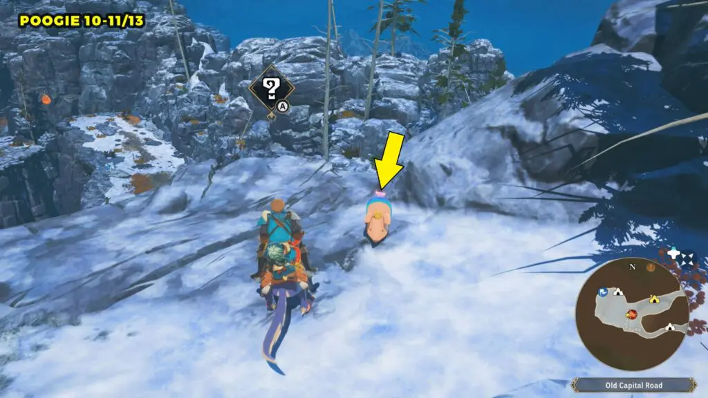 This Poogie is found at the marked location. Go to the location marked on the map and jump into the Ground Dive point. Once you reach the lower area, you will find the Poogie near the cliff wall.