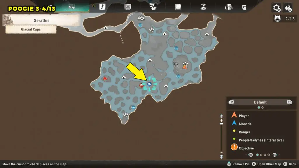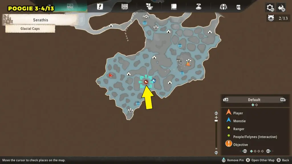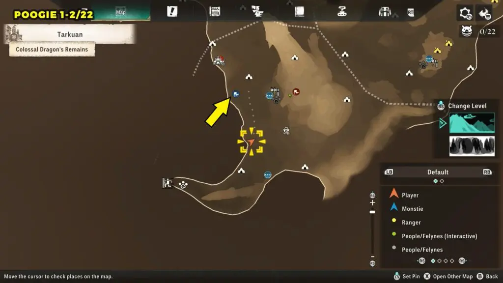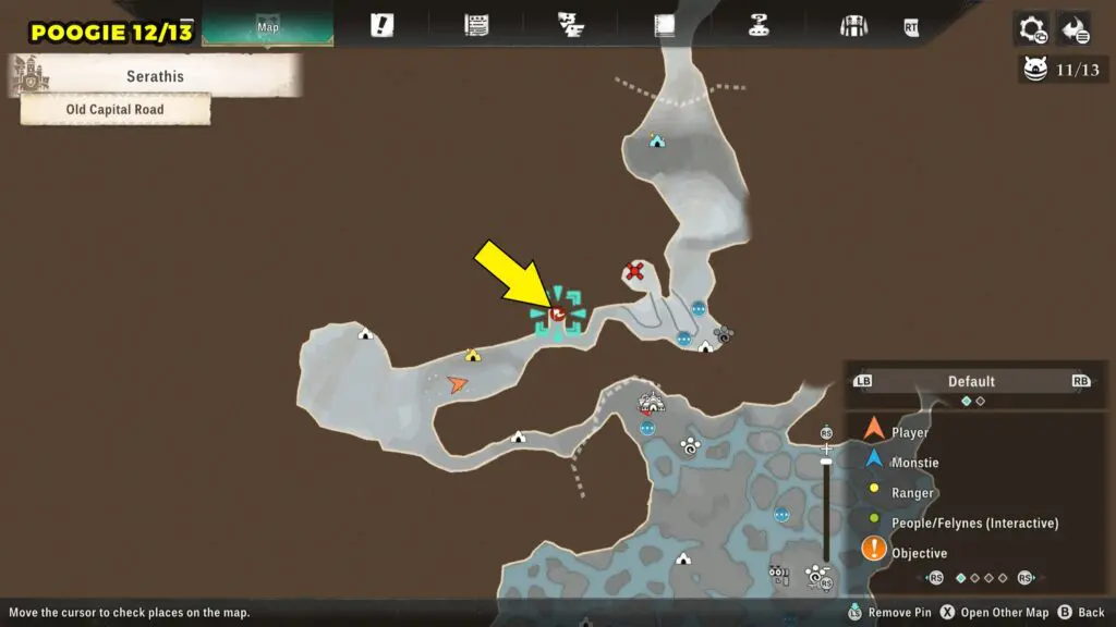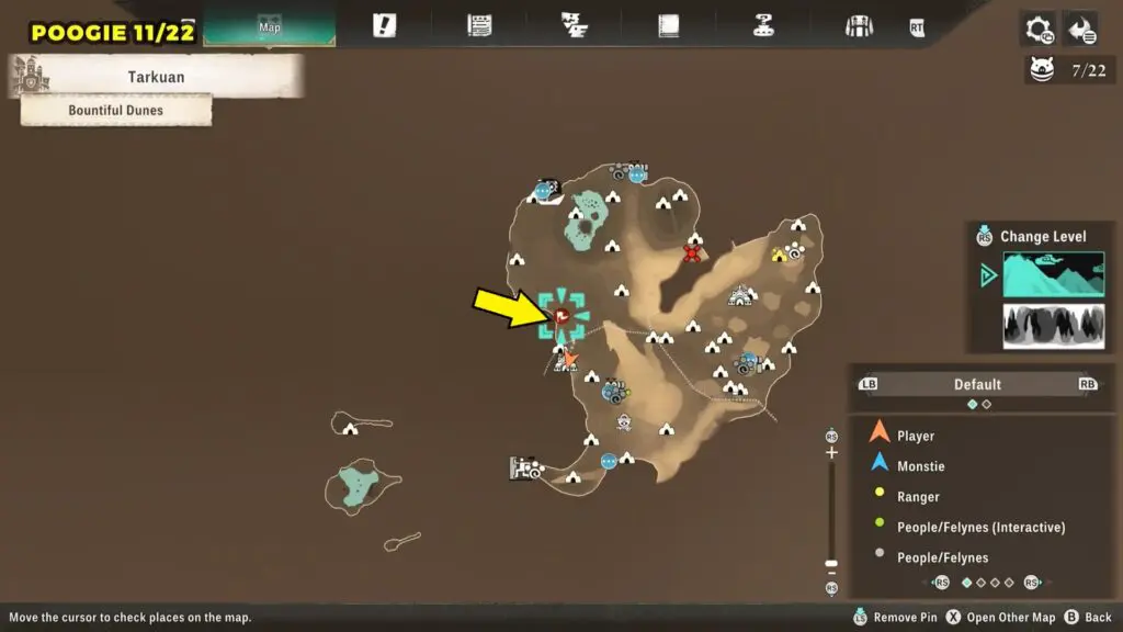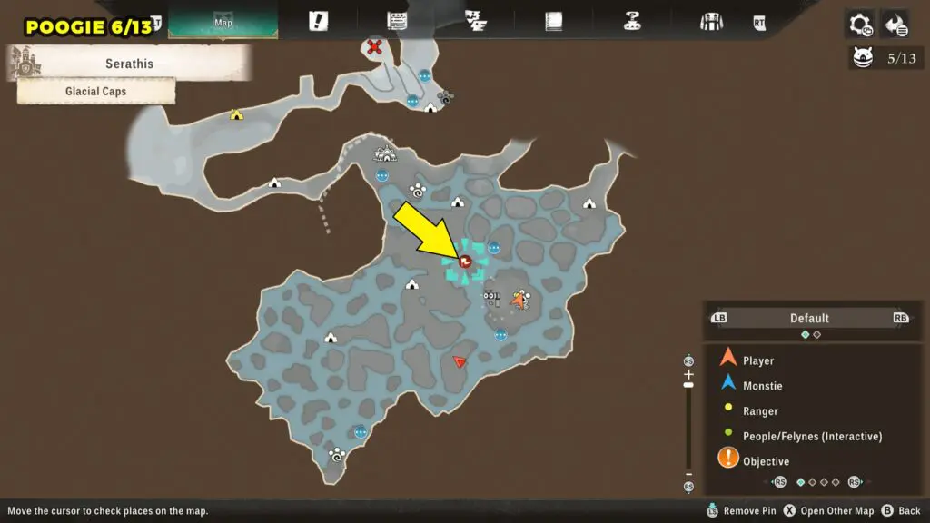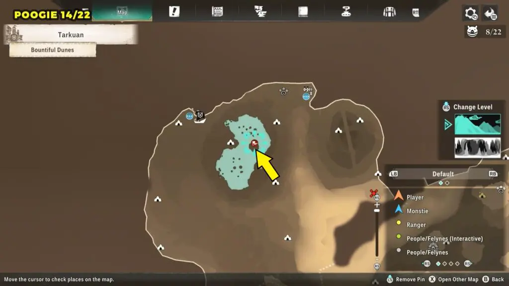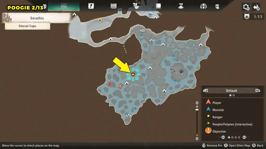 This Poogie is located in the northern part of the map. Head to the marked location and wait there for the Poogie to spawn.