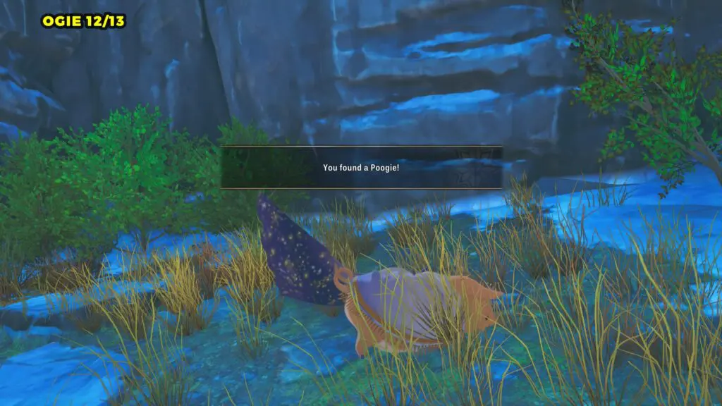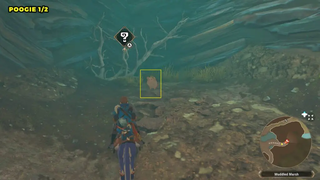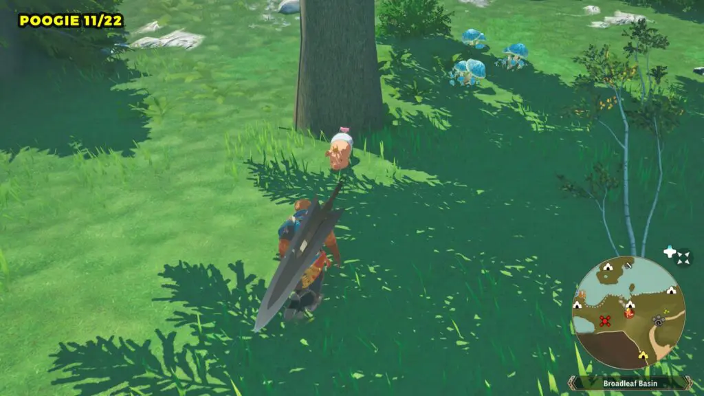 Head to the marked location on the map to find a Poogie resting at the base of a tree. Once you’ve found it, move southwest from that spot toward the water. You’ll come across another Poogie nearby.