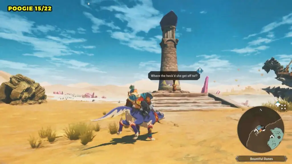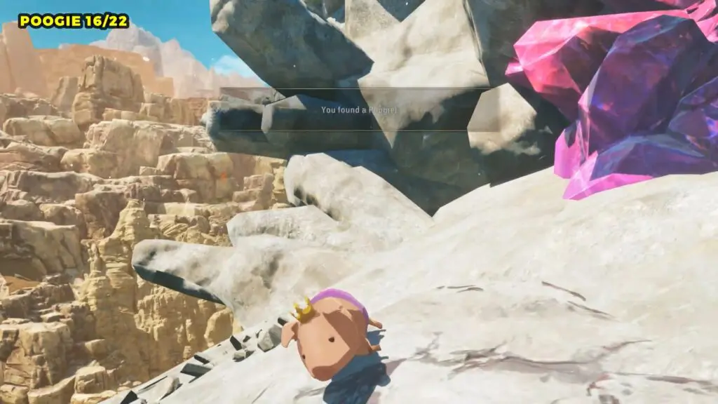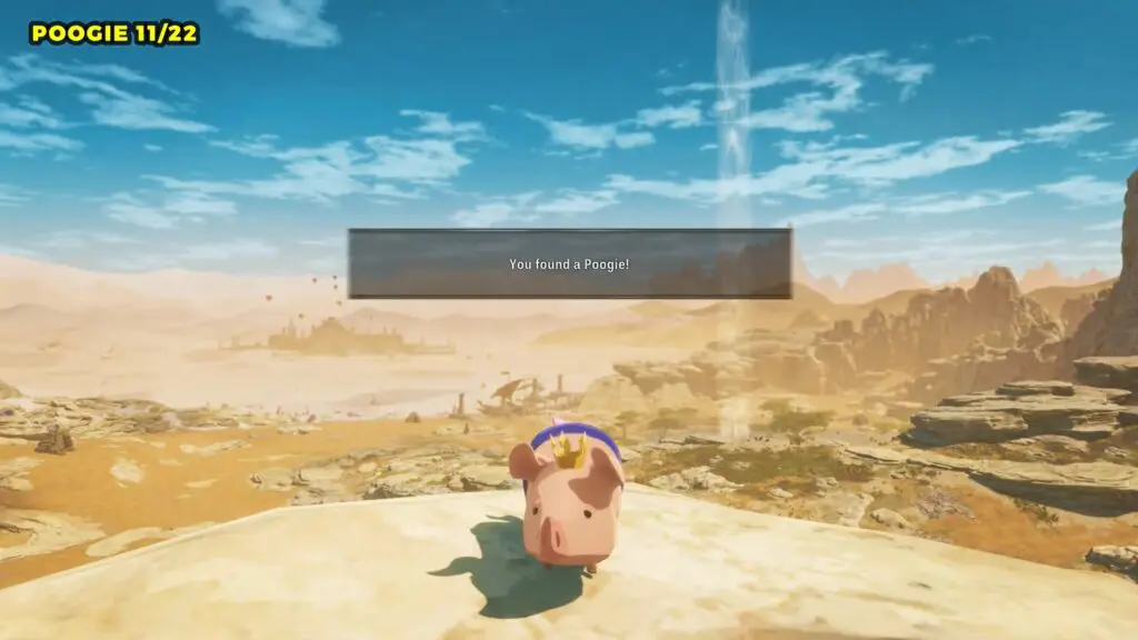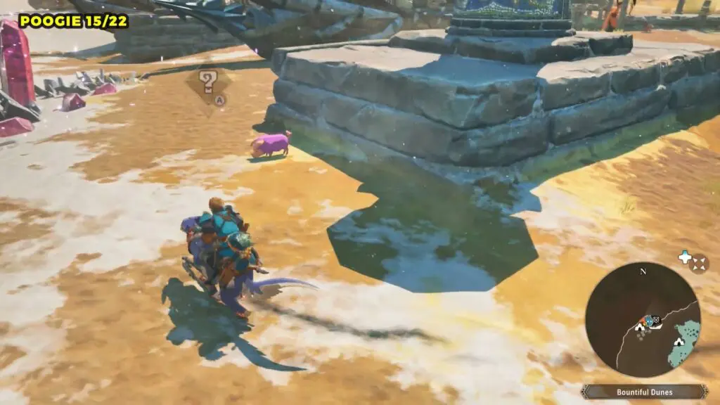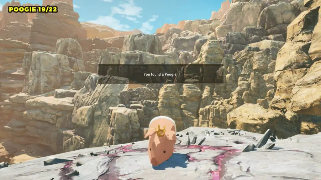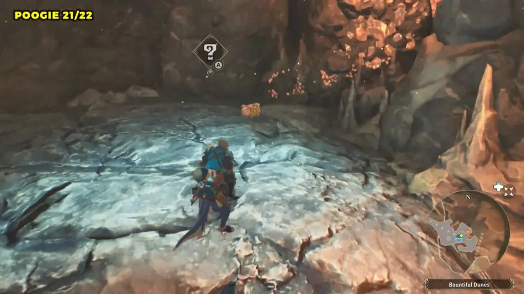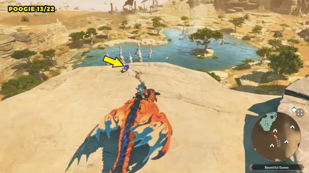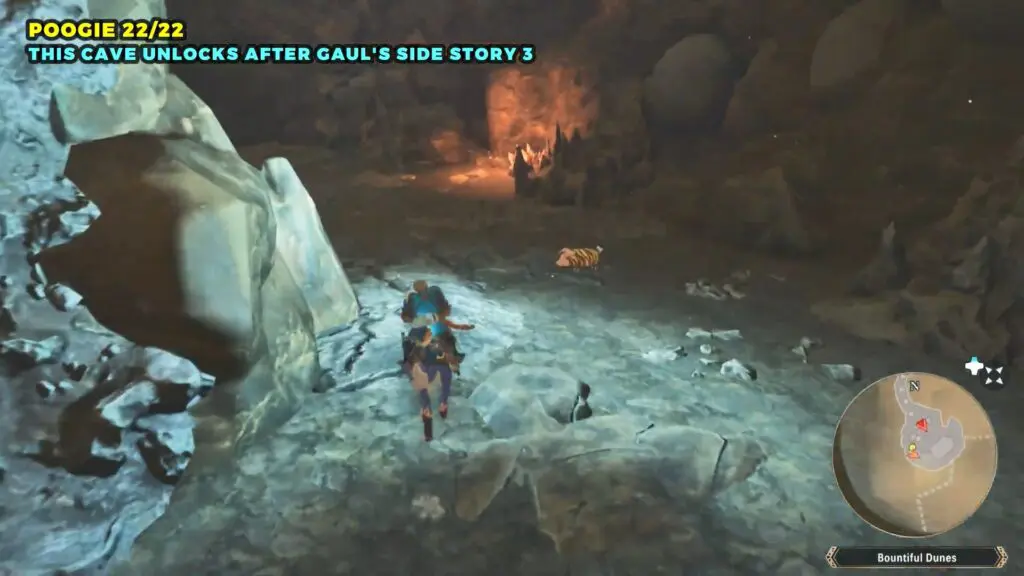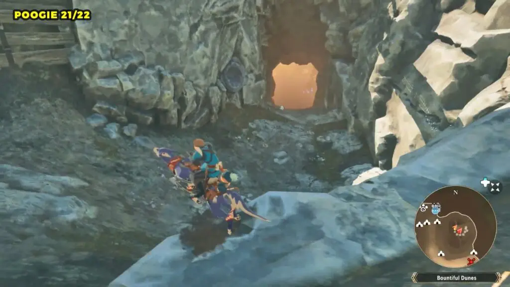 Head to the giant bridge on the eastern side of Bountiful Dunes and enter the cave at its base. Once inside, check the left side for a small alcove where you’ll find the Poogie.