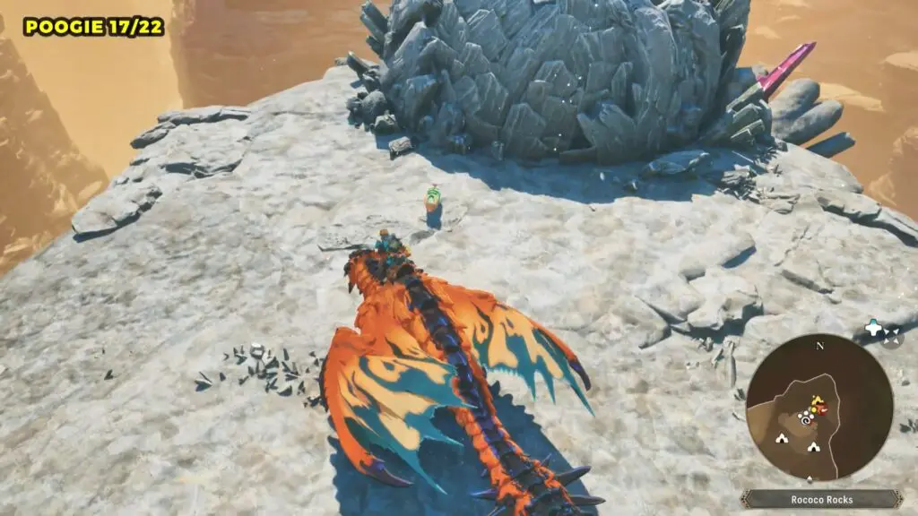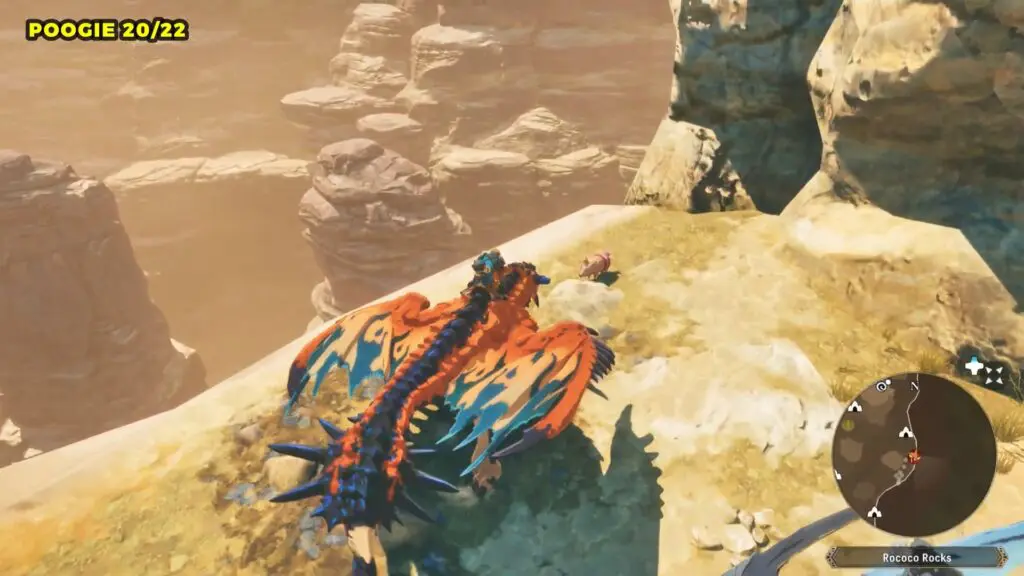 Fly east from the Rococo Rocks Camp to find this Poogie on top of a rock formation near the edge of the map.