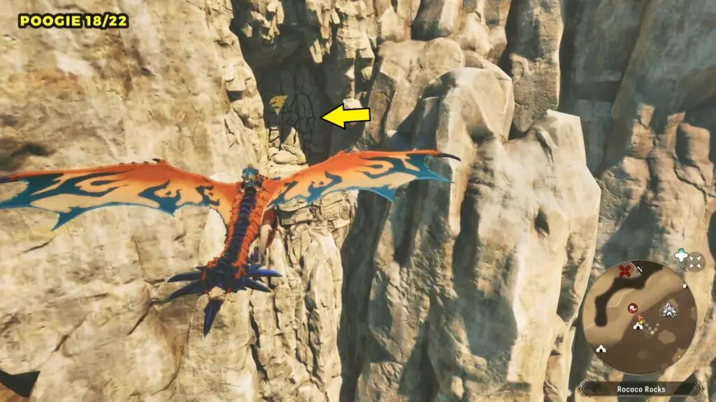 Head west from the Rococo Rocks Camp and look for a breakable wall on the mountainside. Go inside to find the Poogie.