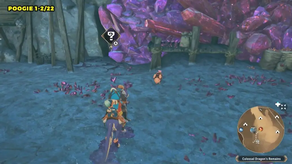This Poogie can be found at the excavation site in the Colossal Dragon’s Remains. You’ll spot Poogie right next to that purple crystallized wall.