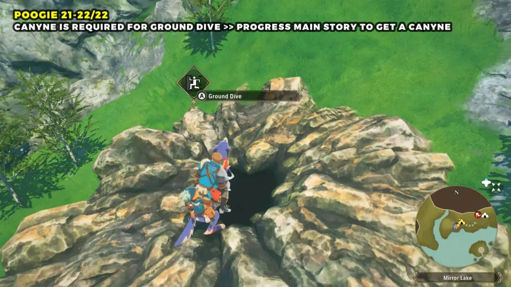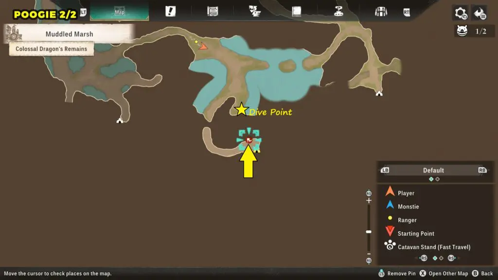 For the second Poogie, head to the dive point shown on the southern side of the map. Use the Ground Dive ability there to reach the lower area and find the Poogie.