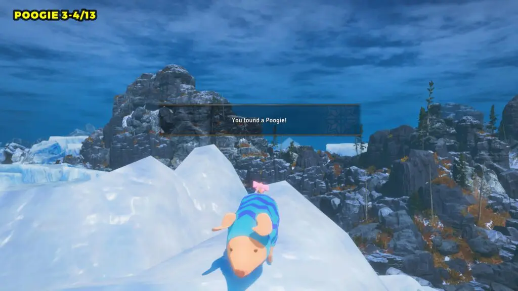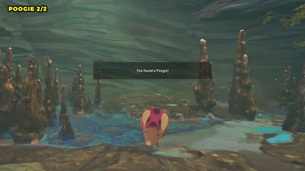 The second Poogie can be found by breaking a wall on the mountain. Use the wind current to glide upward toward the wall, then attack it to break it and head inside to reveal the Poogie.