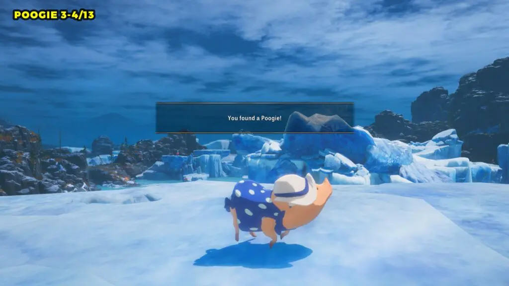 This Poogie is located southeast of the previous one, resting on a small iceberg. Refer to the marked location below for its exact position.