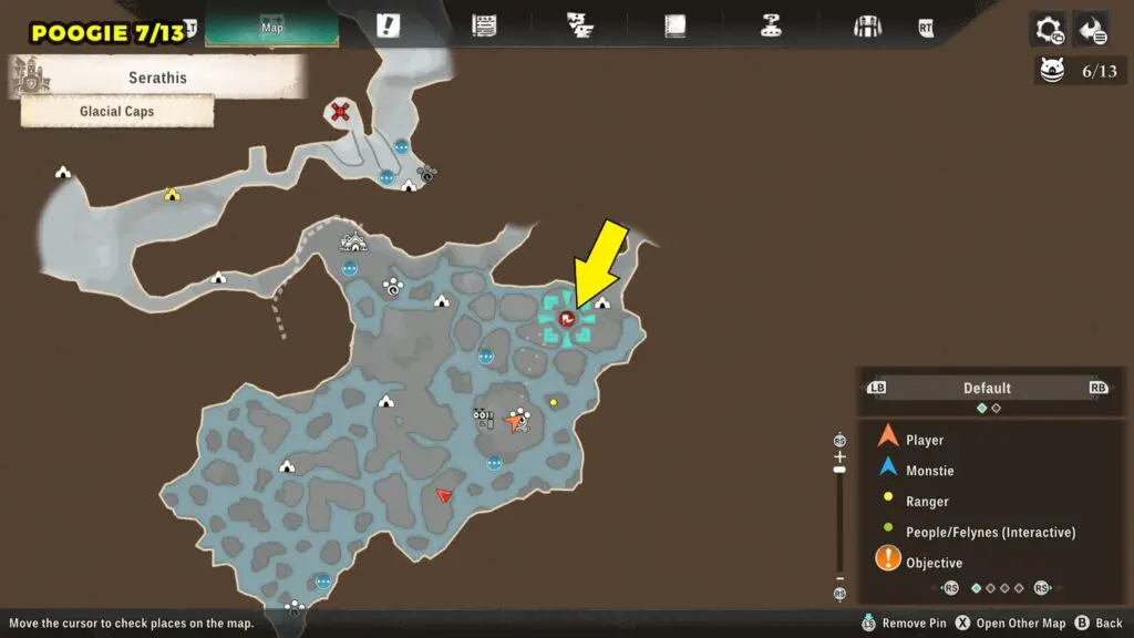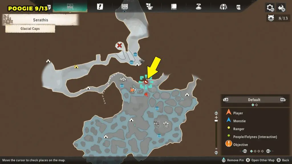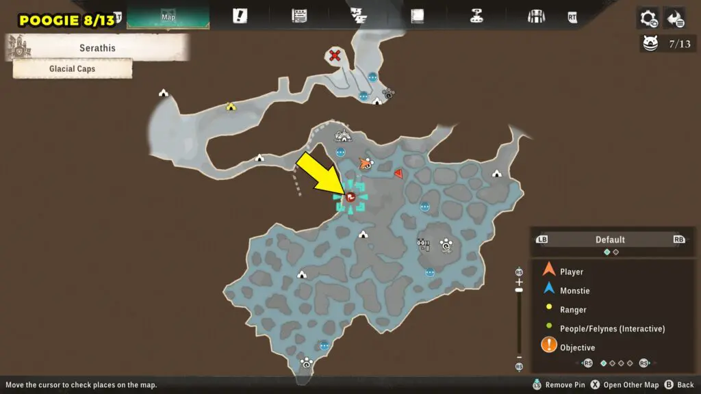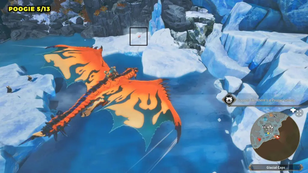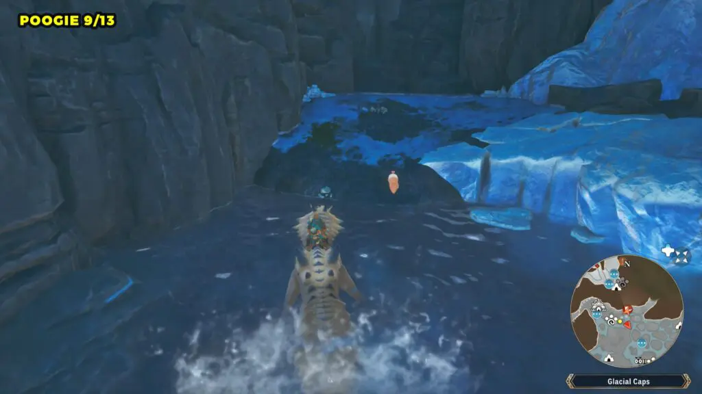 This Poogie can be found on a small ice in the northern area of the Glacial Caps. Check the marked location below for exact positioning.