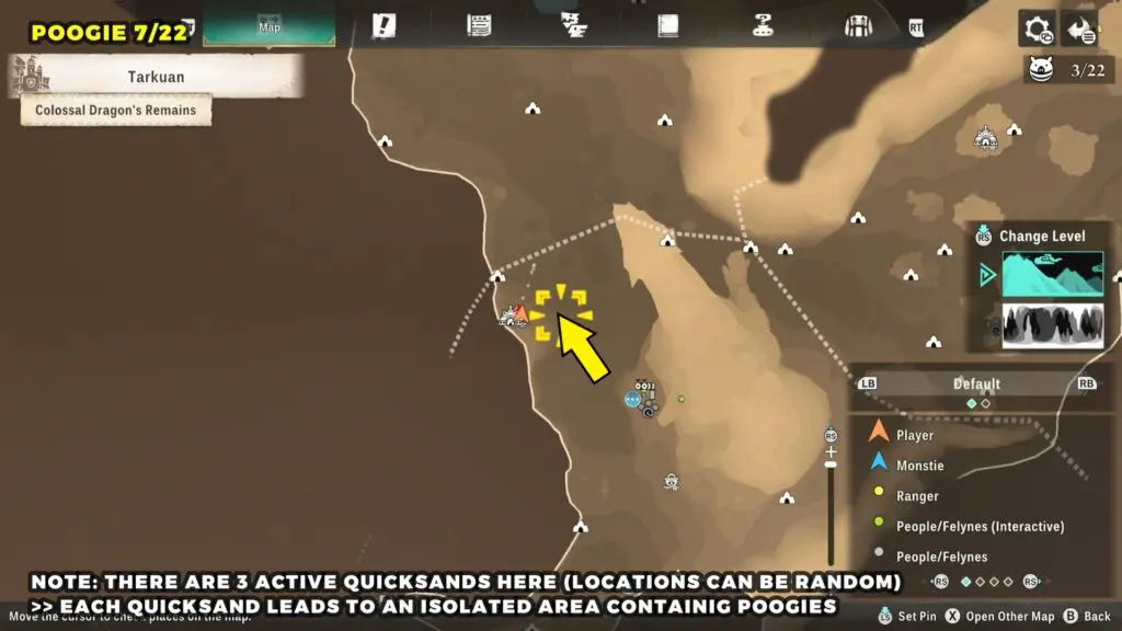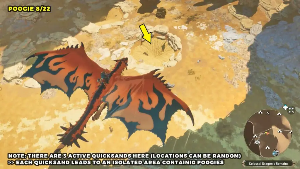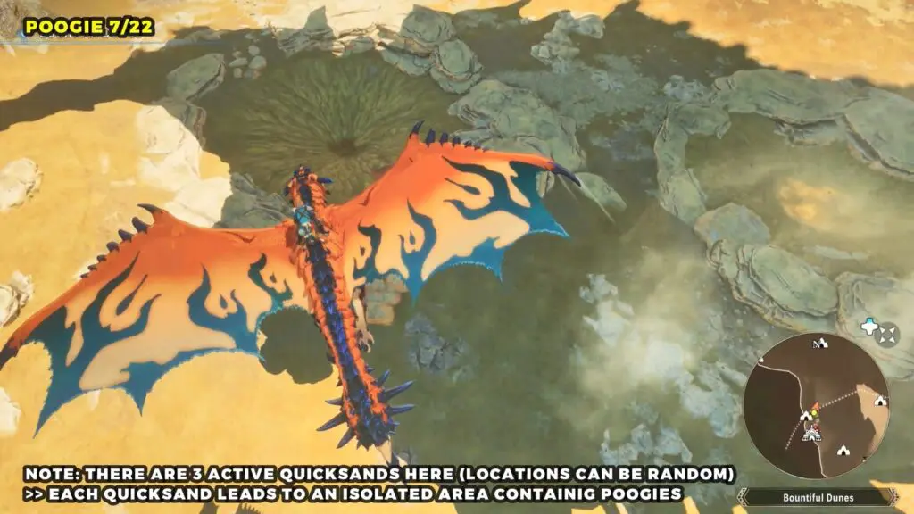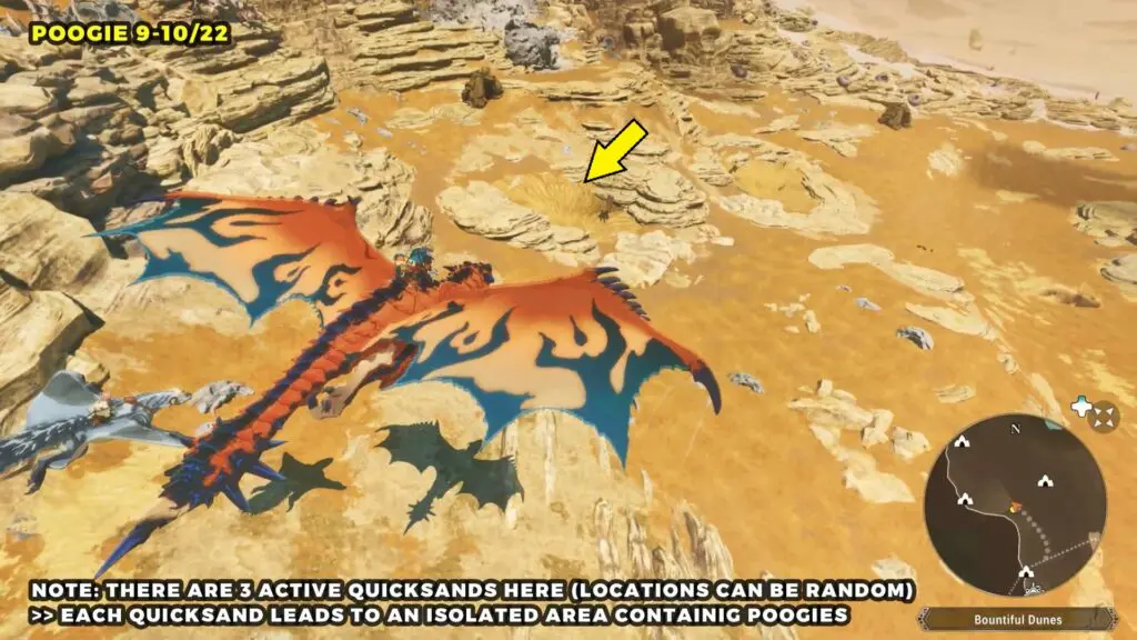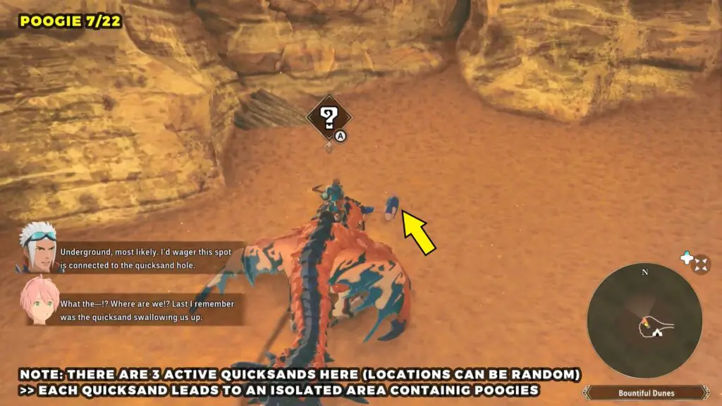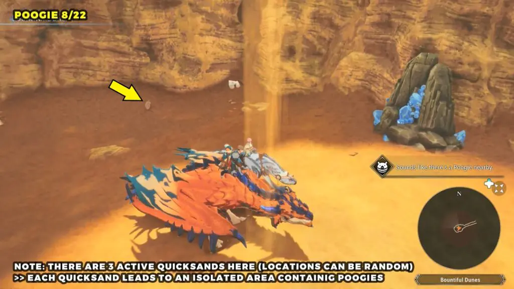 Head to the Catavan Stand Camp on the west side of the map. Around this area, you’ll find three quicksand spots. Each one will pull you into an underground region where you can find a Poogie.
