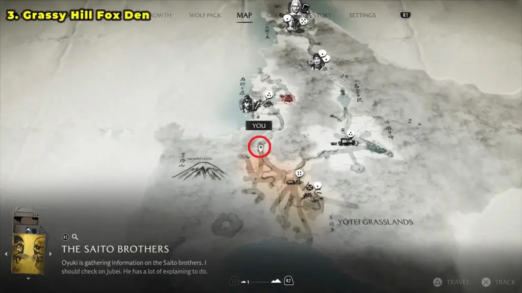 3) Grassy Hill Fox Den (Yotei Grasslands)