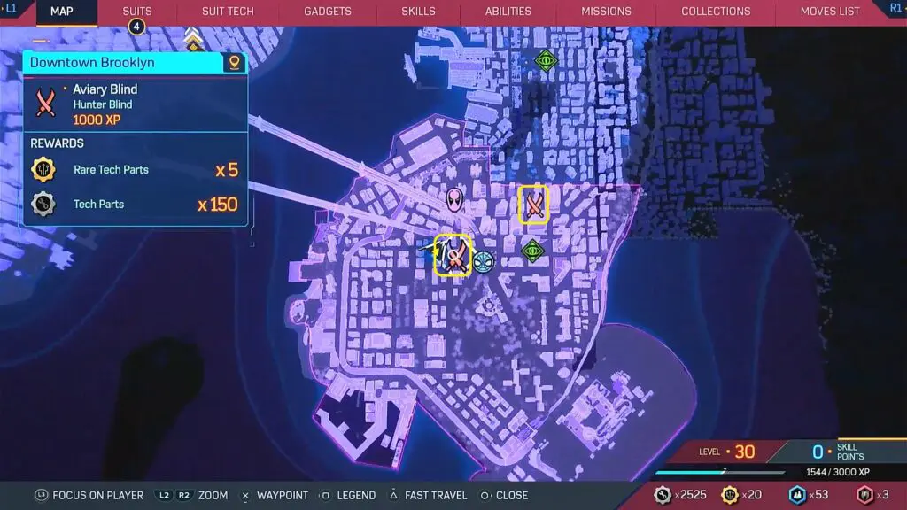 This guide shows the location of all 11 Hunter Blinds in the Spiderman 2 game, which released on 20 October 2023. Completing all Hunter Blinds is required to unlock the Seek and Destroy trophy.