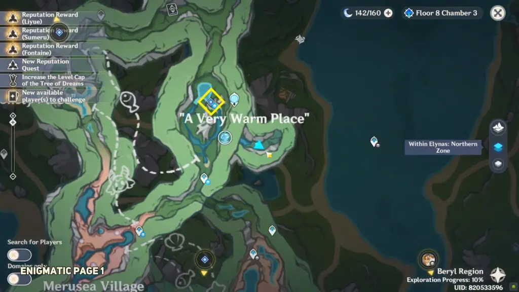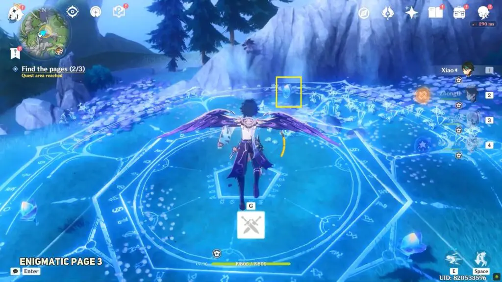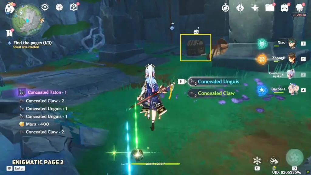 The enigmatic page is concealed in a cave near Beryl Mountain. The cave’s entrance is near the destroyed bridge on the mountain’s western side. After defeating the enemies within the cave, open the chest to find the page.