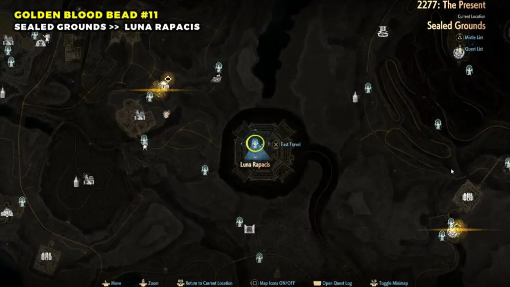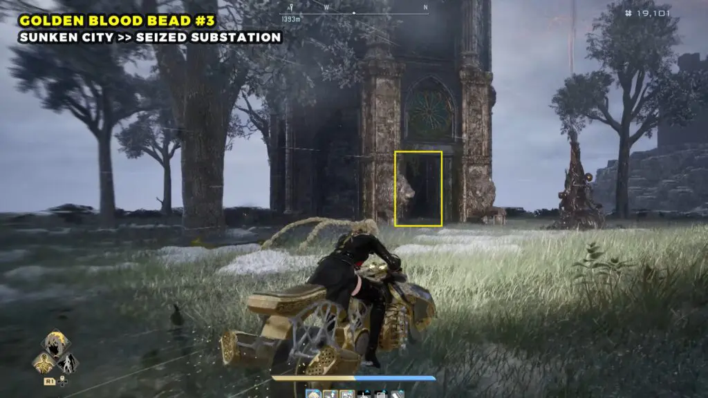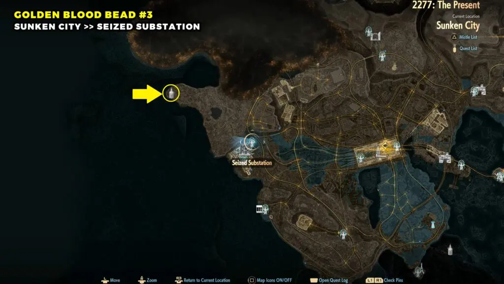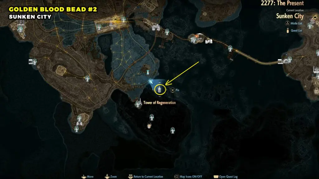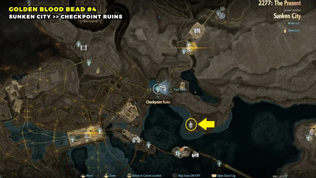 The Golden Blood Bead can be found in the northwestern part of the Sunken City. Head toward the top left area of the map and look for a broken building.