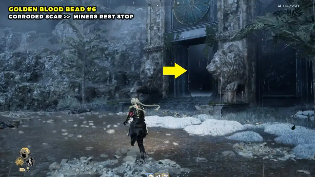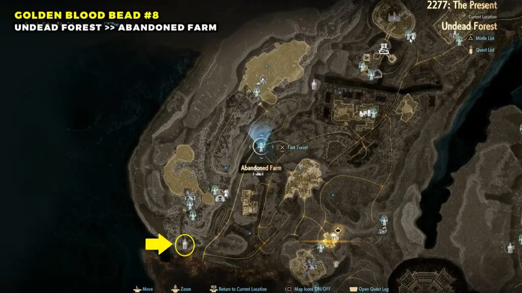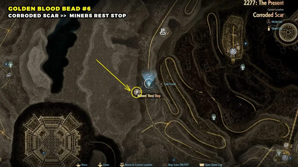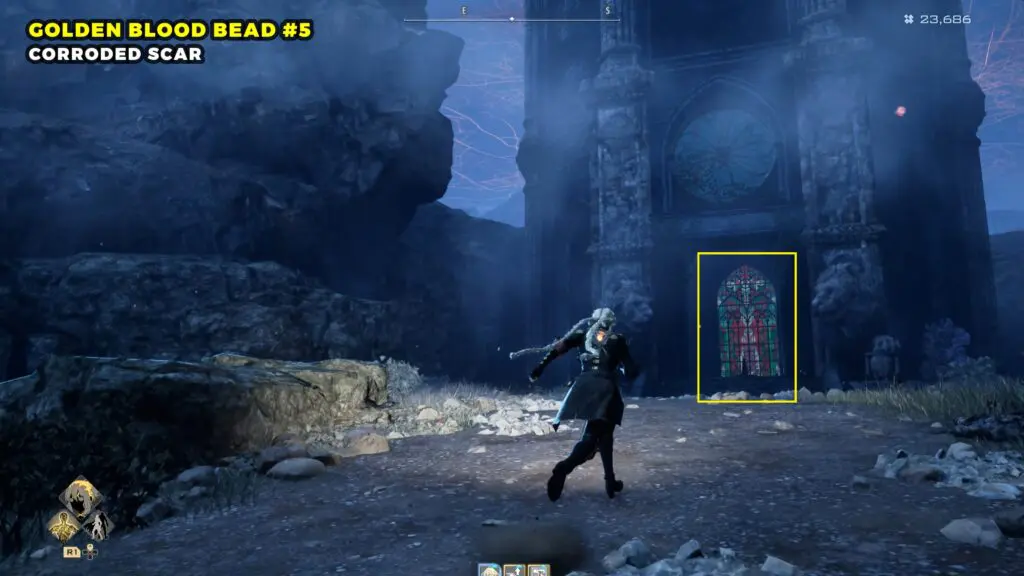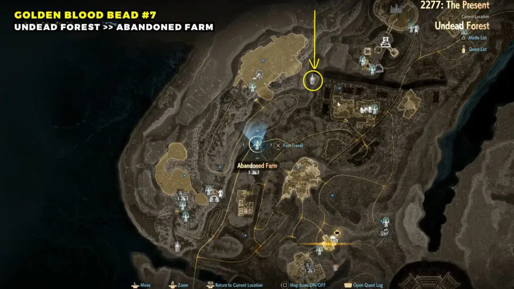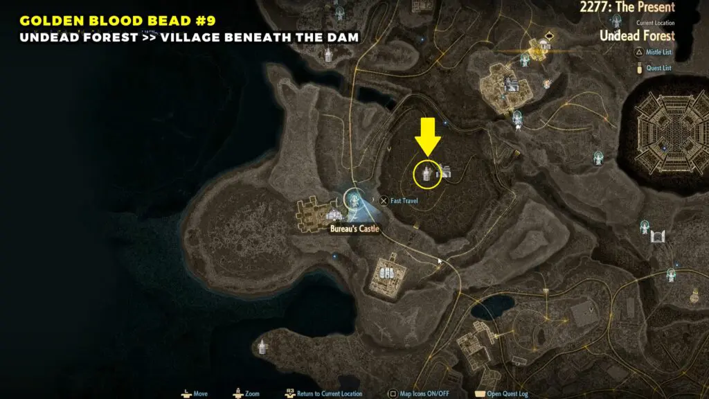 The Golden Blood Bead can be found in the northwestern part of the Sunken City. Head toward the top left area of the map and look for a broken building.