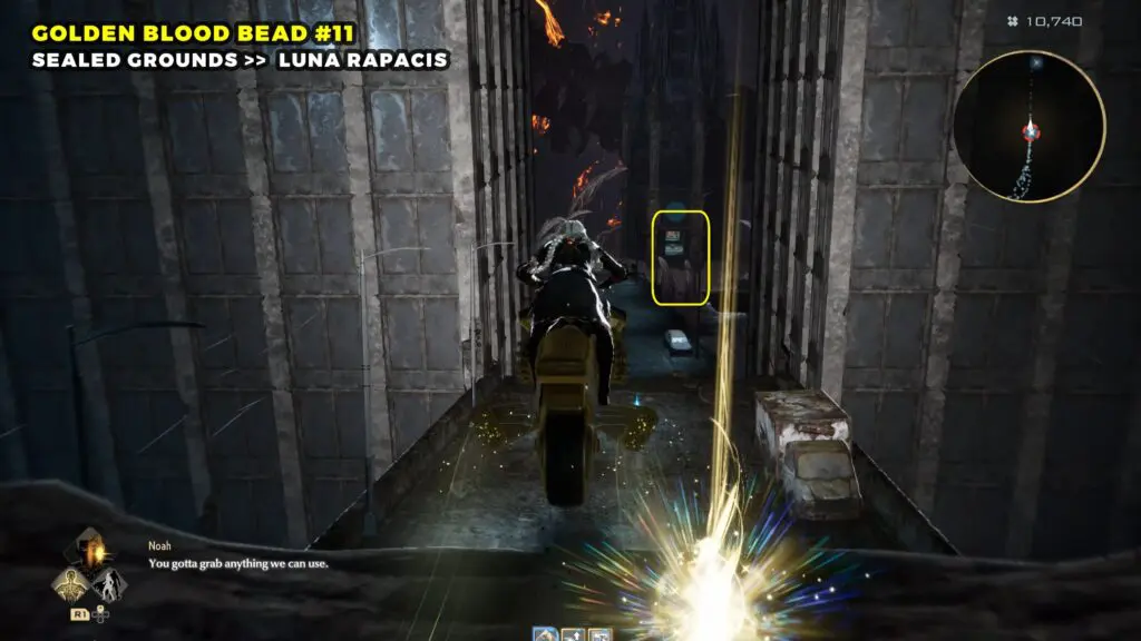 Start at the Luna Rapacis Mistle and walk down the path toward the southeast. You will see a tunnel straight ahead. At the tunnel, turn left and drop down onto the broken highway below. Use the motorcycle to glide across the damaged road. Keep going until you reach the Tower of Regeneration at the far end.