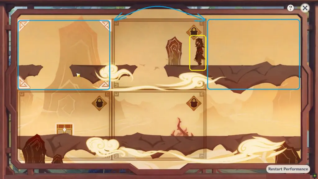 Switch the starting block (upper-left) with the upper-right.